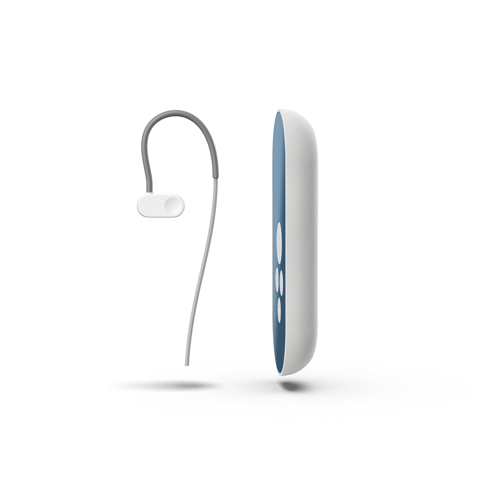 - Place the earpiece on your left ear with the electrodes correctly on your left tragus (protruding part of your ear)